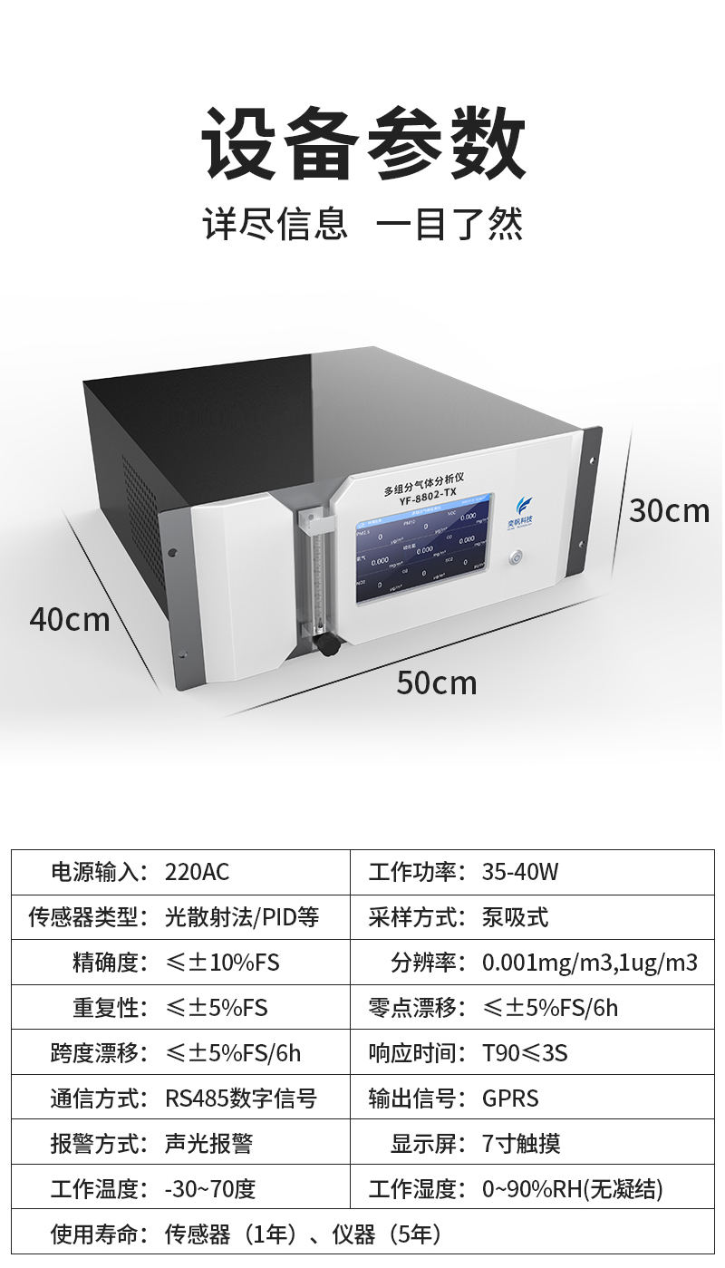 YF-8802-TX紫外-紅外光譜氣體分析儀,基于氣體在紫外-紅外光波段的吸收原理,該分析儀基于紫外吸收光譜技術和化學計量學算法,能夠測量S02、NO、02等氣體的濃度,具有測量精度高、可靠性高、響應時間快、適用范圍廣等特點。可廣泛應用于環境在線監測、工業過程控制、安全監測等領域。