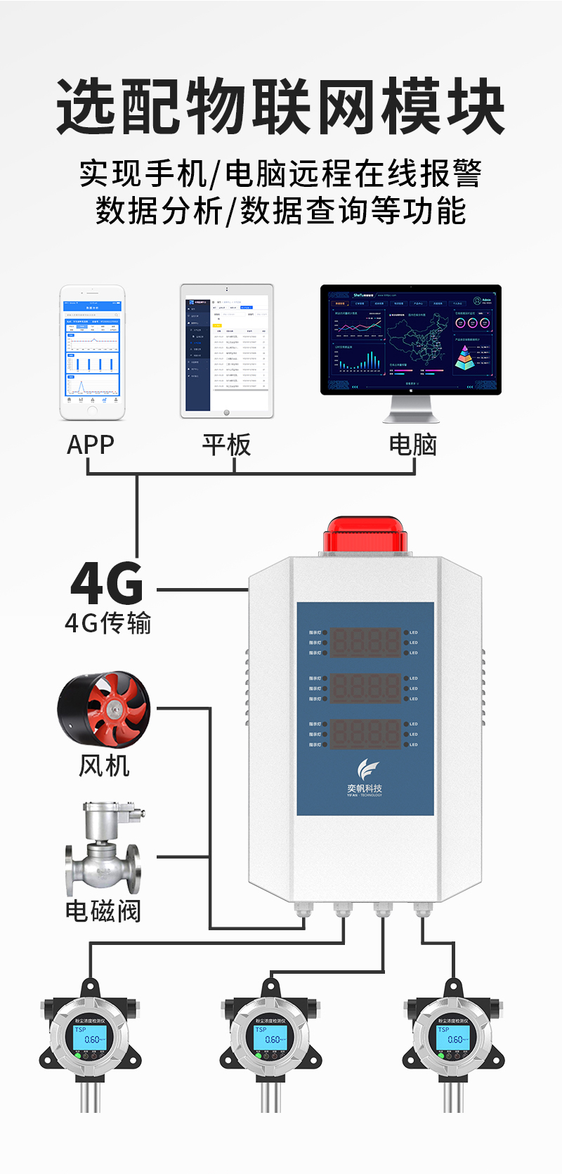 可在app和云平臺查看實時數據、歷史數據、導出數據等,同時具備24小時連續監測、超標報警、數據存儲功能。
