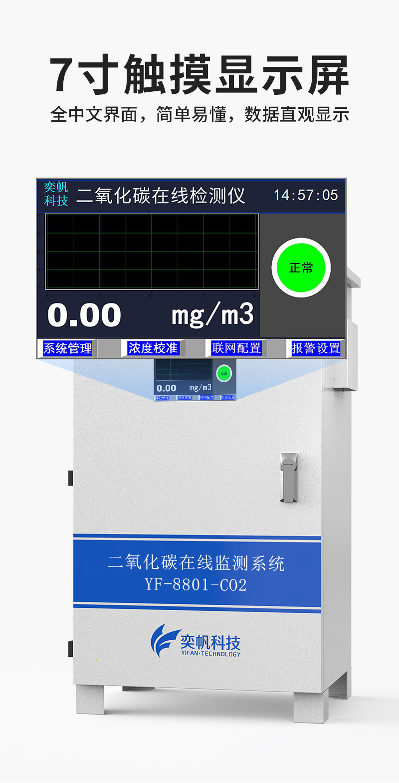 YF-8801-CO2奕帆二氧化碳在線監(jiān)測(cè)系統(tǒng),由奕帆科技自主研發(fā),適用于連續(xù)監(jiān)測(cè)無組織環(huán)境空氣中的二氧化碳等常見氣體,產(chǎn)品配備高精度傳感器,采用泵吸式采樣監(jiān)測(cè),內(nèi)置多重預(yù)處系統(tǒng),包括除塵除水過濾等,可以很好的保護(hù)傳感器不受侵害,保證監(jiān)測(cè)數(shù)據(jù)的準(zhǔn)確穩(wěn)定。奕帆二氧化碳在線監(jiān)測(cè)系統(tǒng)具備24小時(shí)連續(xù)監(jiān)測(cè)、超標(biāo)報(bào)警、數(shù)據(jù)儲(chǔ)存等功能,同時(shí)數(shù)據(jù)還可對(duì)接環(huán)保平臺(tái)。