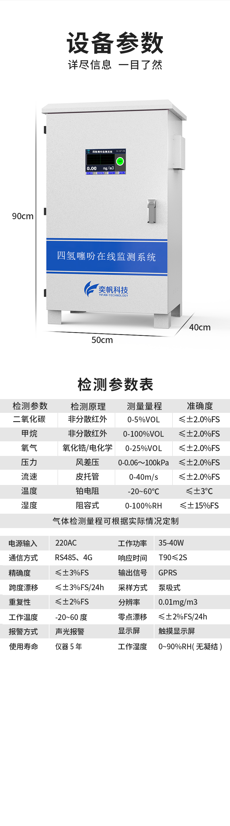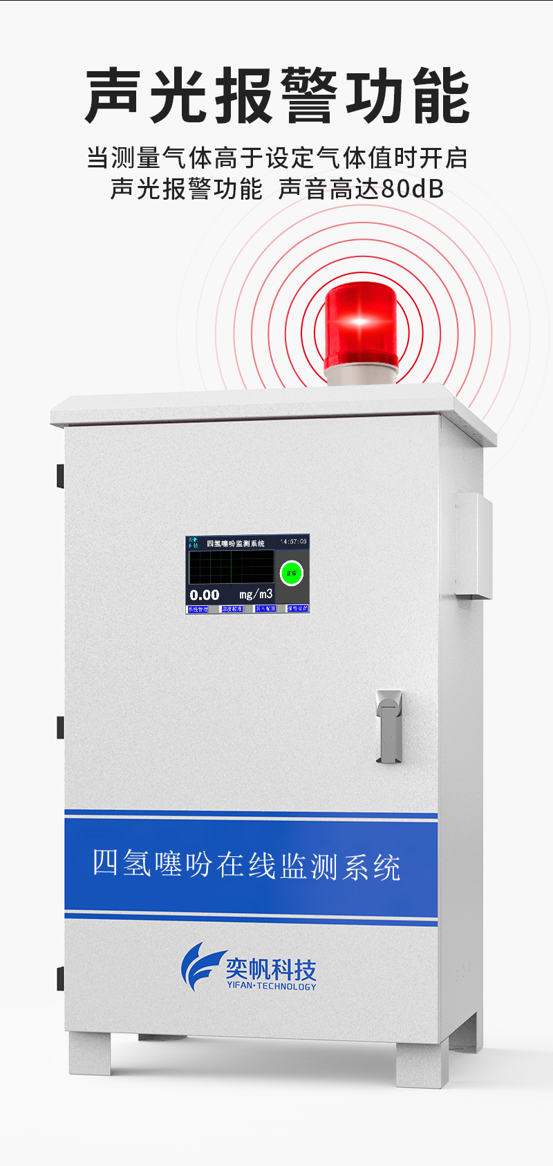 YF-8801-C4H8S奕帆科技四氫噻吩氣體在線監測系統,適用于連續監測無組織環境空氣中的非甲烷總烴、苯、甲苯、二甲苯等揮發性有機物氣體。產品選用進口原裝(baseline)高精度PID光離子傳感器,采用泵吸式采樣監測,內置多重預處系統,包括除塵冷卻除水過濾等,可以很好的保護傳感器不受侵害,保證監測數據的準確穩定。可在app和云平臺查看實時數據、歷史數據、導出數據等同時具備24小時連續監測、超標報警、數據存儲功能。產品已獲得CCEP中國環境環保協會認證、CMA檢測報告:軟件著作權登記證書。