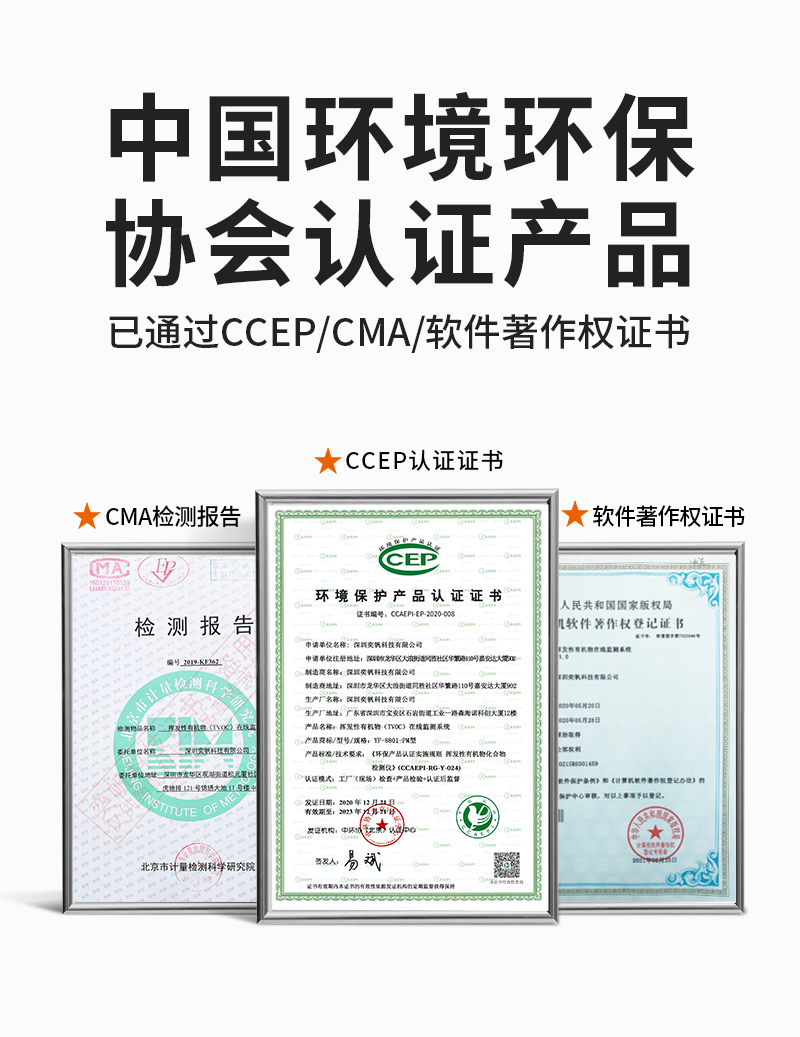 產(chǎn)品資質齊全,有CCEP環(huán)保協(xié)會認證、有計量院CMA檢測報告 -