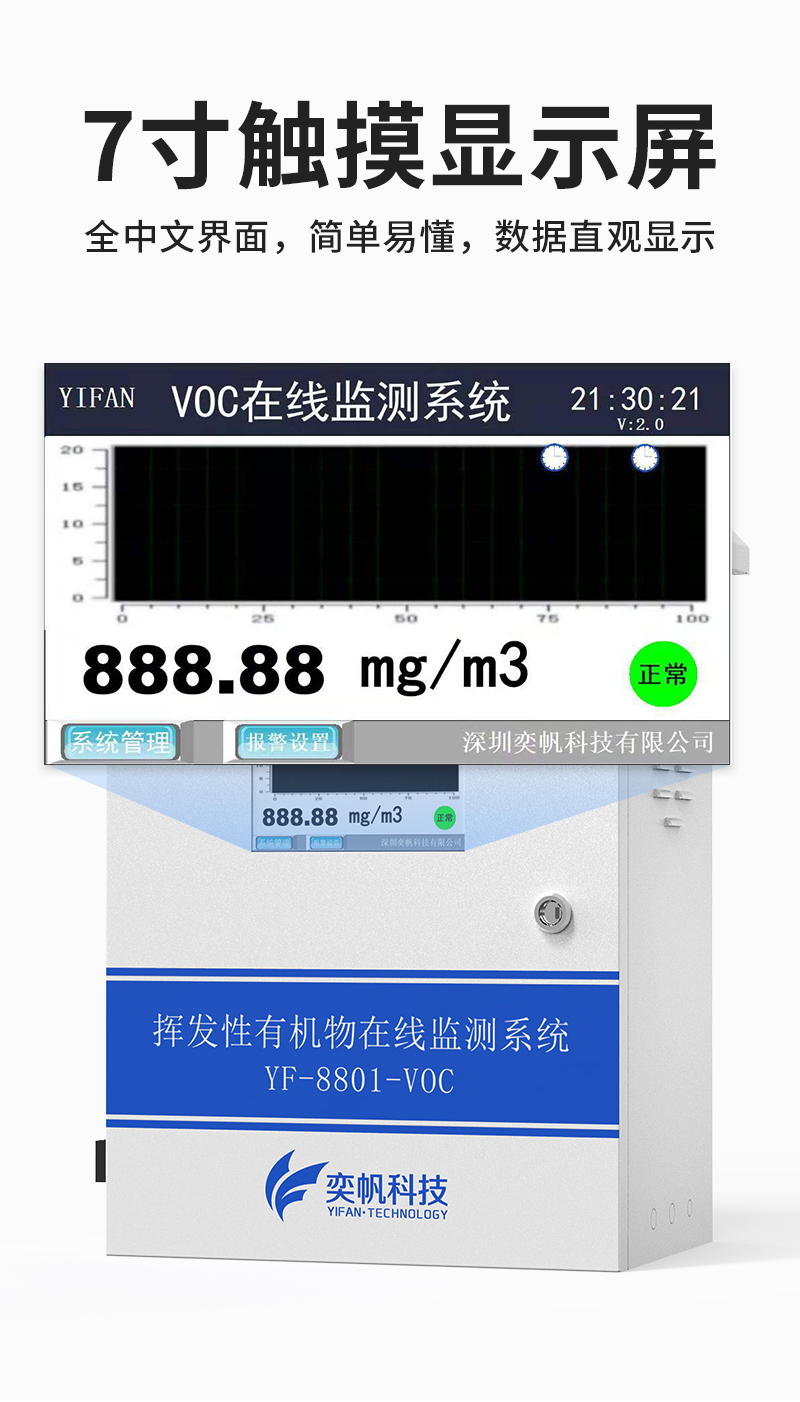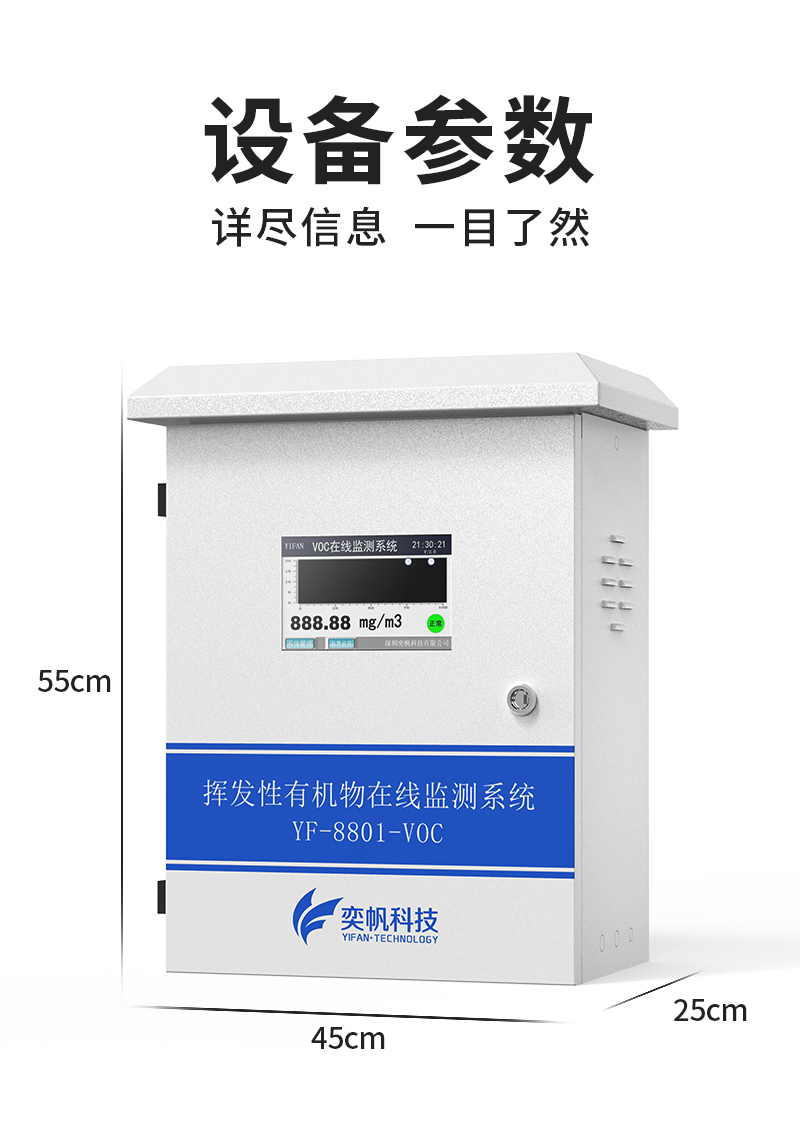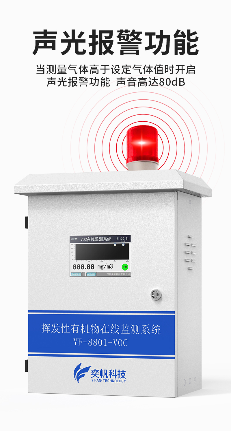 YF-8801-VOC奕帆科技TVOC在線監(jiān)測系統(tǒng),適用于連續(xù)監(jiān)測無組織環(huán)境空氣中的非甲烷總烴、苯、甲苯、二甲苯等揮發(fā)性有機物氣體。產(chǎn)品選用進口原裝(baseline)高精度PID光離子傳感器,采用泵吸式采樣監(jiān)測,內(nèi)置多重預處系統(tǒng),包括除塵冷卻除水過濾等,可以很好的保護傳感器不受侵害,保證監(jiān)測數(shù)據(jù)的準確穩(wěn)定。可在app和云平臺查看實時數(shù)據(jù)、歷史數(shù)據(jù)、導出數(shù)據(jù)等同時具備24小時連續(xù)監(jiān)測、超標報警、數(shù)據(jù)存儲功能。產(chǎn)品已獲得CCEP中國環(huán)境環(huán)保協(xié)會認證、CMA檢測報告:軟件著作權登記證書。